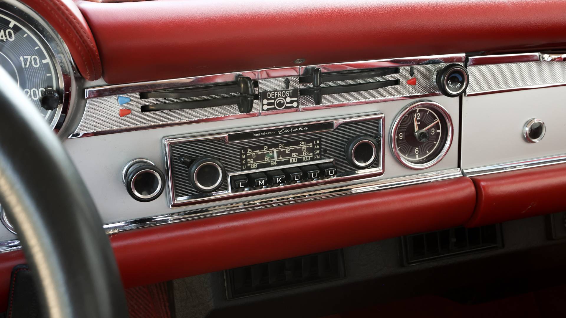 Ulteriori perfezionamenti includono l'installazione di un cambio a 5 marce e un sistema di climatizzazione aggiornato, che offre un miglioramento sostanziale rispetto alle unità originali installate dal concessionario. All'interno, un bracciolo centrale dell'Atelier Bracq aggiunge comfort, mentre la classica radio Becker è stata modernizzata internamente per fornire un'uscita RMS 40x4 con Bluetooth, USB e funzionalità digitale. Questo si collega discretamente a un sistema di altoparlanti e subwoofer di alta qualità. Anche l'illuminazione è stata aggiornata con fari alogeni per una migliore funzionalità.
