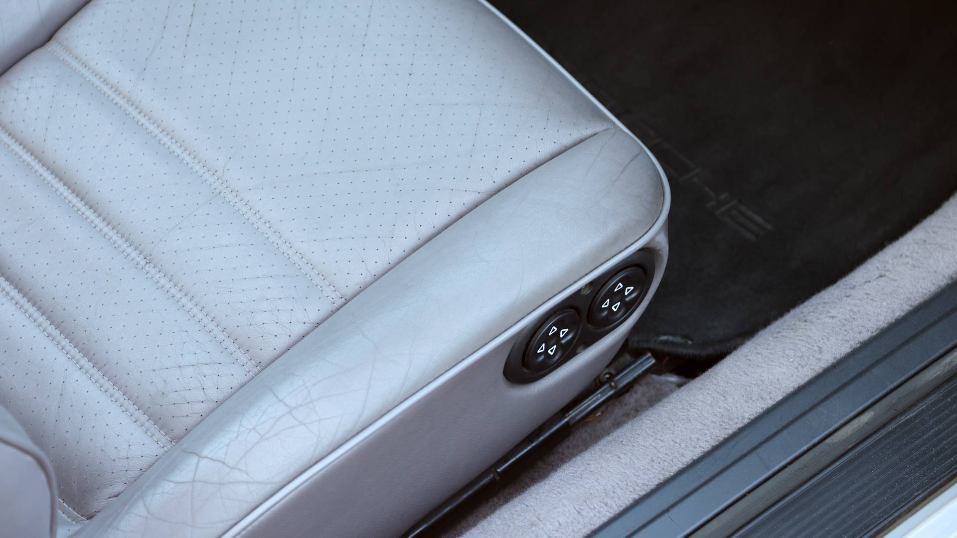 Gli interni sono altrettanto ben conservati: la pelle grigia rimane morbida e ben curata, mentre il quadro strumenti e gli interruttori appaiono freschi e perfettamente funzionanti. È dotata di sedili elettrici completamente regolabili, ABS e aria condizionata, che la rendono confortevole e utilizzabile nelle condizioni quotidiane.